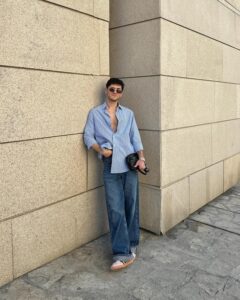 اگر دنبال استایلی هستی که هم تابستونی باشه، هم خاص، پیشنهاد ما: • شلوار جین بگ رنگ آبی روشن + تیشرت لینن سفید + صندل مشکی + کیف دوشی مینیمال.